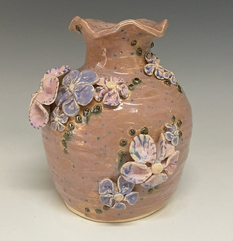 Progress: I used the extruder to make my coils. I attached each coil by smoothing the inside of the vase as I created the structure. Once I was satisfied with the shape of my base, I slipped and scored flowers and bees on the outside of the base for the 3-dimensional aspect. I am waiting for it to be fired.